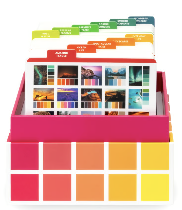 Choosing colours that work well together can be challenging. Trying to master the colour wheel and grasping colour theory can feel like working on a 1000-piece puzzle with no picture. There’s an easier way that can take the stress out of choosing colours, and help you to create with confidence. Simply pick a card, match your supplies, and create.